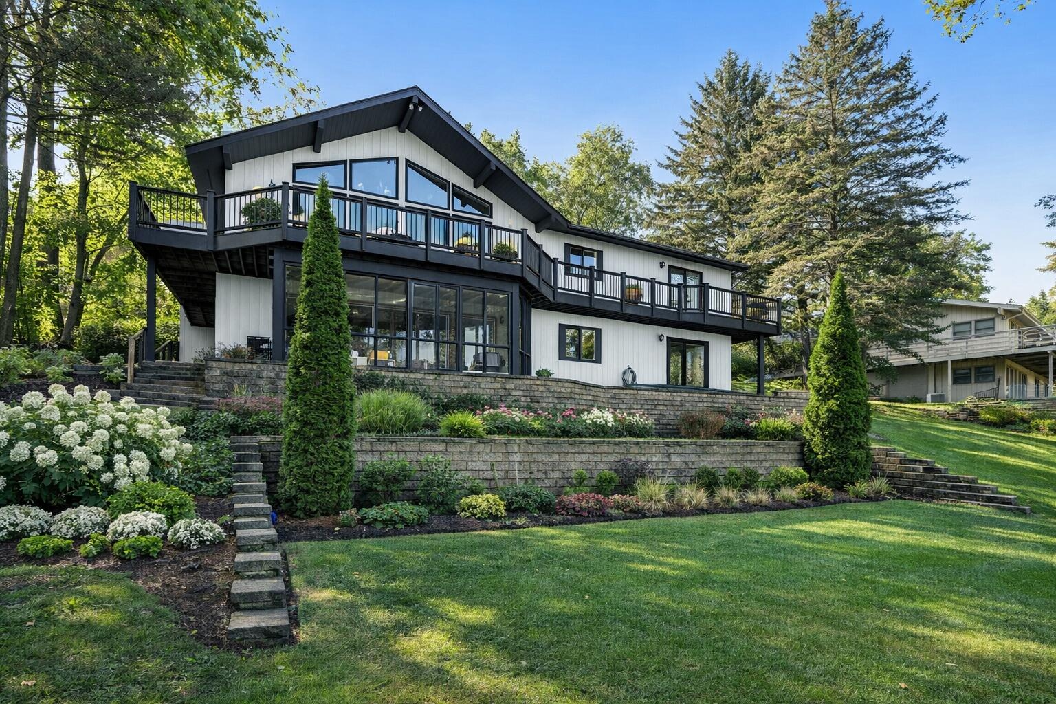 Discover the perfect blend of comfort and serene lakefront living. Set on the coveted Springs of Middle Lake, this home is designed for making memories. The main-level bedroom with en suite bath offers a private escape, while the inviting living room, with its soaring A-frame windows, offers breathtaking water views and fills the home with natural light. Step outside to embrace the lake lifestyle, whether it's morning coffee on the deck, summer entertaining on the patio, or endless boating and fishing adventures from your two piers. Crafted for relaxation, recreation, and time well spent with family and friends, this isn't just a home, it's the lakefront dream you've been waiting for! Select photos are virtually re-imagined using AI and are for illustrative purposes only.
